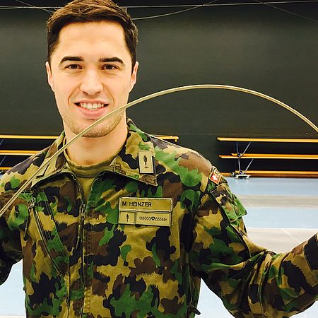 Max in green<br>Since 2010 he has been able to rely on the great support of the Swiss army and is employed half-time as an elite sportsman-regular soldier.