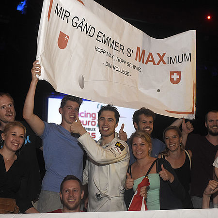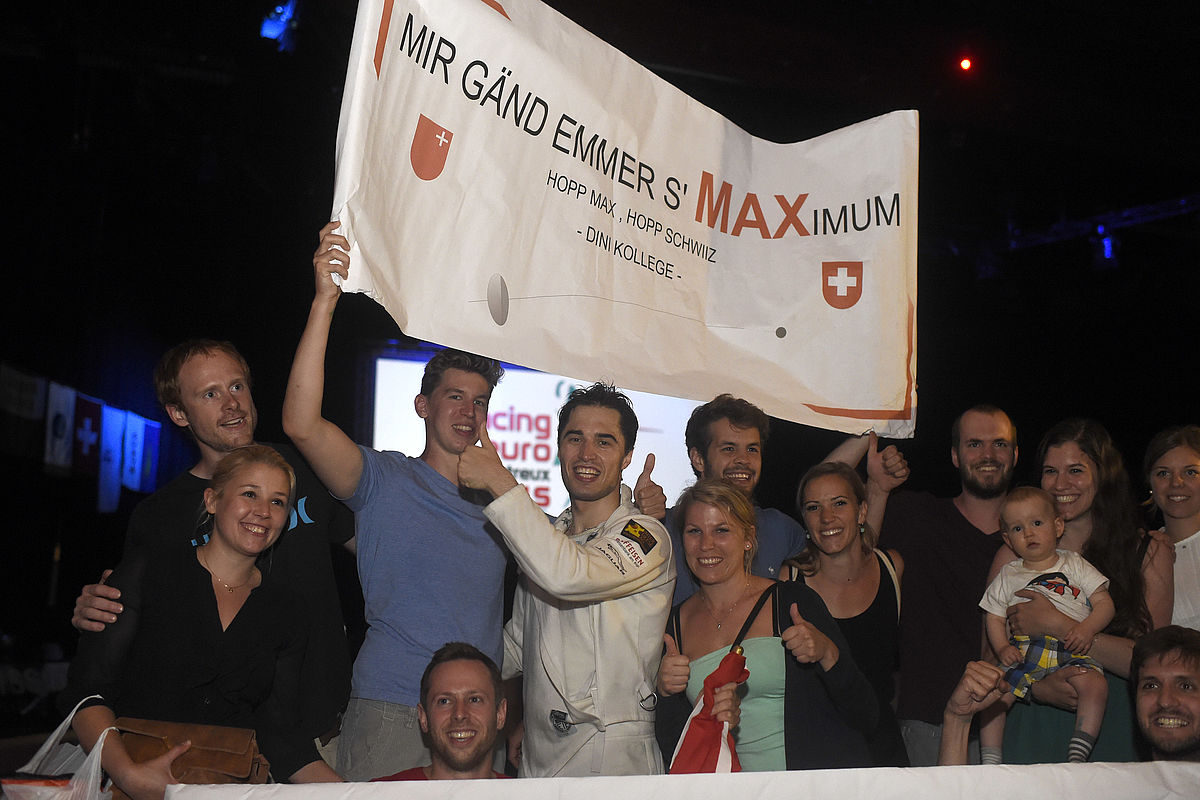 Go for it<br>Max can count on the loud support of his friends and fans in competitions.