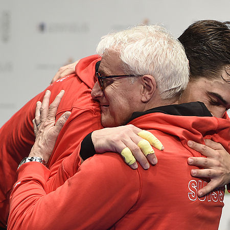 From 2009 to 2016 Gianni Muzio shaped Max’s fencing career.<br>Together they achieved great successes, here as runner-up to the European title in Montreux 2015.