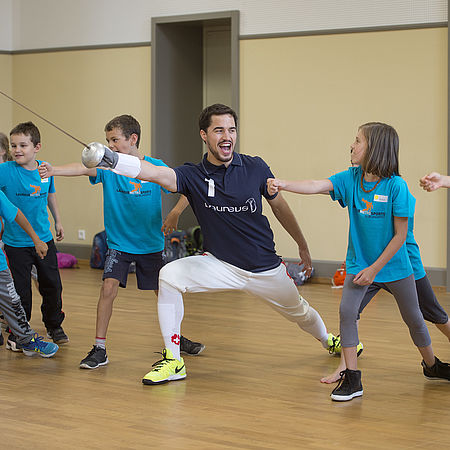 Honorary office<br>Max is also involved in the community, teaching children to fence. As here, as ambassador of the Laureus Foundation Switzerland.