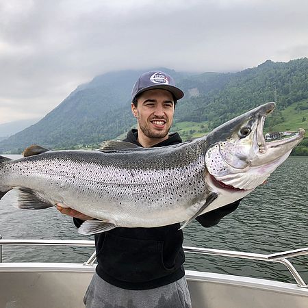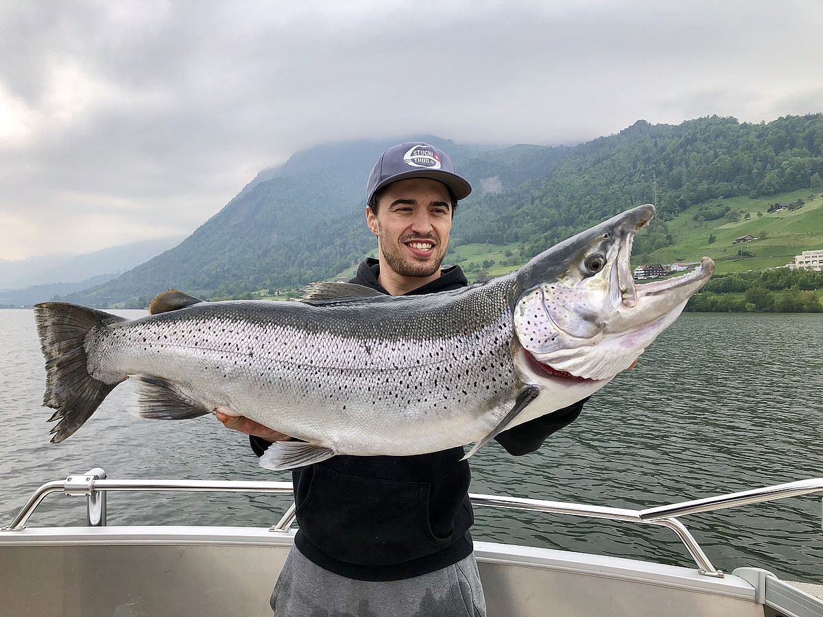On the lake<br>In his leisure time Max is often to be found on the Zugersee. Fishing is his favourite hobby.