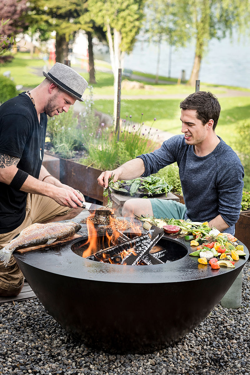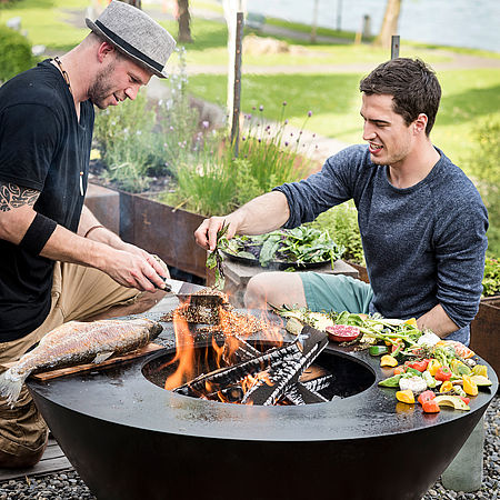 Feuerring<br>Max likes to eat healthily, he prefers to prepare fresh fish himself on the fire ring.
