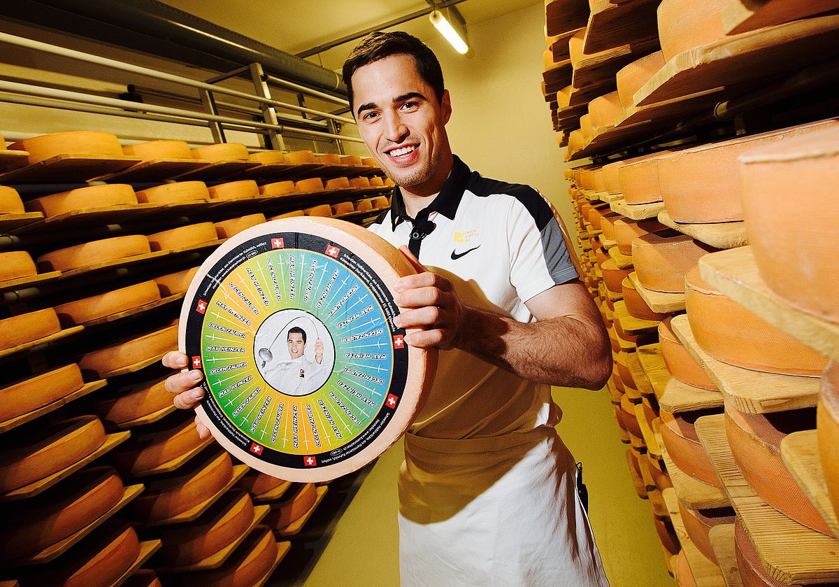 Degenzauber<br>Max loves cheese. His long-term sponsor InterCheese AG has put a cheese of his own on the market with the "Max Heinzer - Degenzauber" cheese.